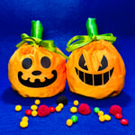 Mini bolsas aterciopeladas en forma de cañabaza inspiradas en el Halloween de Pokemon y Animal Crossing.