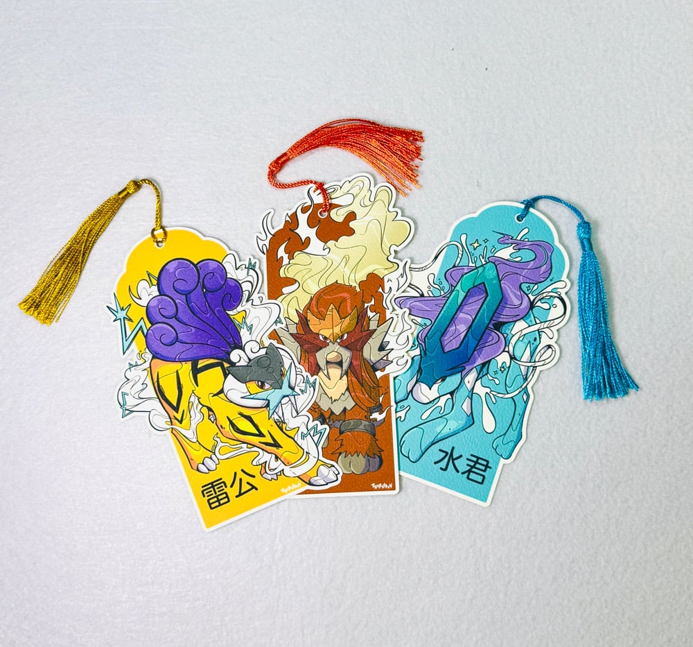 Punto de libro de los perros legendarios de Pokémon Raikou, Entei y Suicune. Puedes conseguirlos individualmente de forma sorpresa o en pack de 3.